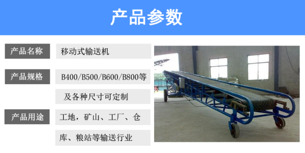 移動輸送機應用廣泛,皮帶機輸送平穩(wěn),能夠避免對輸送物的損壞。 輸送機配有行走輪,可作整機移動,輸送傾角可以根據實際需要調整,根據輸送工藝布置要求,可以單機或多臺組成水平或傾斜的輸送系統。適用于散運包裝的糧食或其它小顆粒物料的輸送、裝卸、碼垛、作囤、倒倉等倉庫的多種作業(yè),能進入庫內使用,也可在露天使用。
