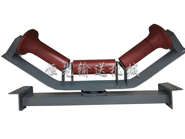 摩擦托輥具有極強(qiáng)的防止輸送帶損傷和跑偏的能力,利用摩擦阻力和摩擦輪弧度的跑偏機(jī)理達(dá)到防止和糾正運(yùn)輸帶跑偏,達(dá)到調(diào)心作用。