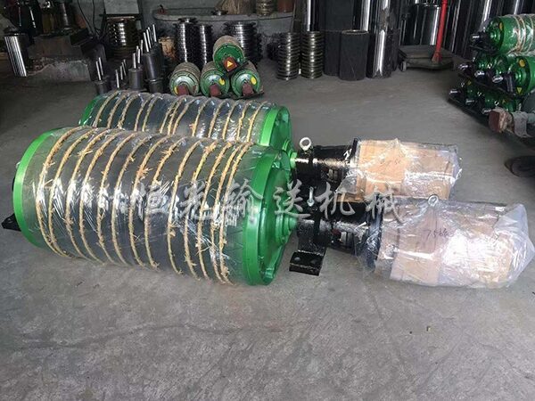 傳動(dòng)滾筒是輸送機(jī)傳遞動(dòng)力的部件。傳動(dòng)滾筒表面有裸露光鋼面,人字形和菱形花紋橡膠覆面。小功率、小帶寬及環(huán)境干燥時(shí)可采用裸露光鋼面。人字形花紋膠面摩擦系數(shù)大,防滑性和排水性好,但有方向性。菱形膠面用于雙向運(yùn)行的輸送機(jī)。